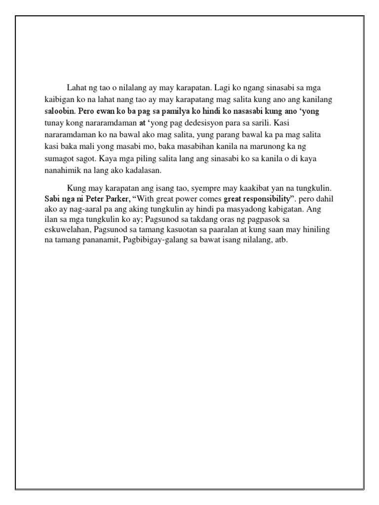 May mga taong nakahahadlang sa pagtatamasa ng mga karapatan o nagiging sanhi ng paglabag sa karapatang pantao. Pms essay paper 2019 solvedJefferson scholarship essay questions a narrative essay about yourself. Ang mga karapatan at tungkulin ng isang tao ay mahalaga upang lubusang mapaunlad ang kakayanan ng bawat isa.
