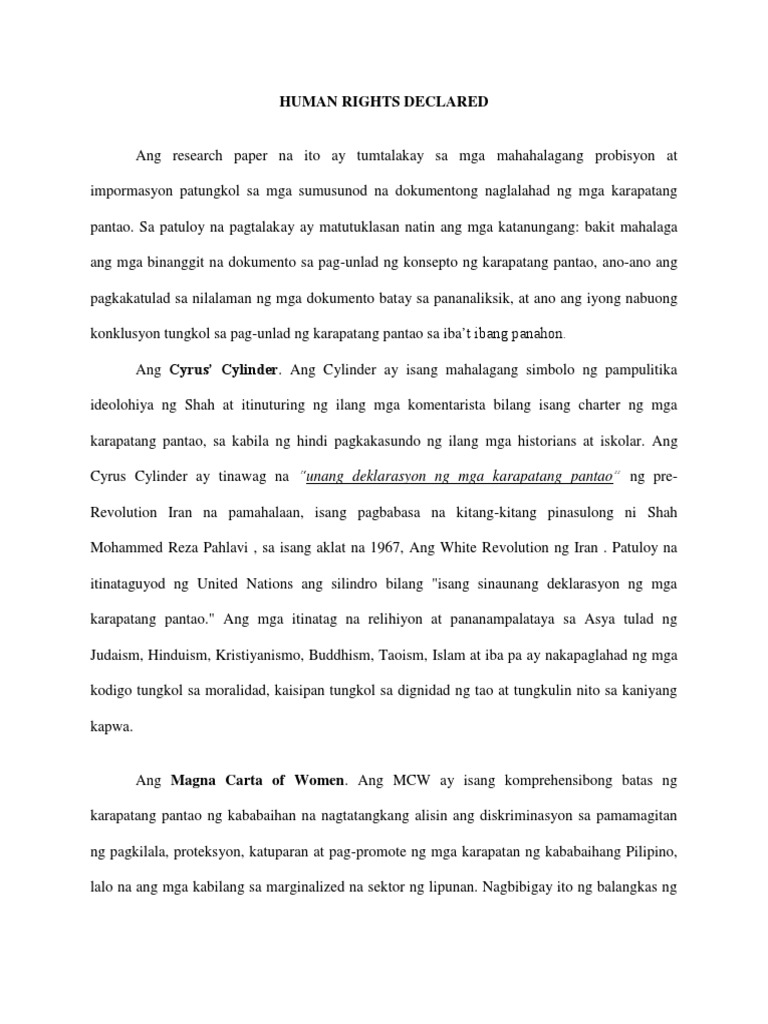 Scribd is the worlds largest social reading and publishing site. Ang bawat taoy may. View karapatang Pantao kasaysayanpptx from AP 321435 at Trece Martires City National High School.