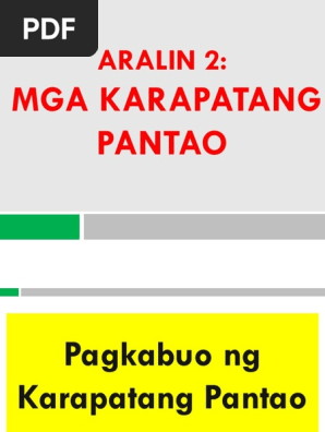 Ang konsepto ng karapatang pantao ay nagmula pa noong sinaunang panahon hanggang sa mabuo ang Universal Declaration of Human Rights ng United Nations noong 1948. Nagsulong ang United Nations ng dalawang kasunduan para maging batas ang karapatang pantao. MGA HALIMBAWA NG KARAPATANG PANTAO Kalayaan sa pagsasalita Pagkakapantay- pantay sa harap ng batas Karapatang makapaghanap buhay Karapatan sa pagkain Karapatang makilahok sa kalinangan Karapatan sa edukasyon Dokumento Mga.
