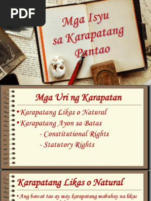 Isyung Karapatang Pantao Paglabag sa Karapatang Pantao at Epekto Karapatang Pantao Ang. View Ikatlong-Markahang-Palihan-sa-Kontemporaryong-Isyu-2018-2019-GRADE-10pdf from PSYCH 196 at Stanford University. Ang Karapatan sa Unibersal na Pagtatamasa ng mga Karapatang Pantao Lahat ng tao ay isinilang na malaya at pantay sa dignidad.
