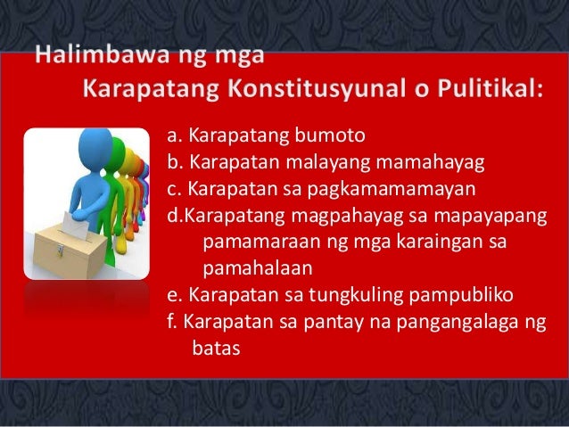 Ang bawat tao ay maya karapatang gamitin ang kanilang isip ng may laya. Article 3 Right to Life Liberty Personal Security. Ang mga Karapatang Pantao at ang Pagkamamamayan Ang bahaging ito ay naglalayong ipaliwanag ang kaugnayan ng ating mga karapatan sa ating pagiging mamamayan ng isang estado.