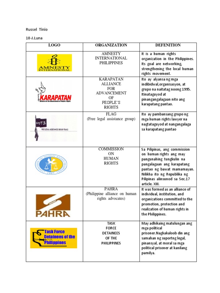 Subukin nga natin ang iyong husay sa pagtukoy sa organisayong nagmamay-ari ng mga logong makikita sa ibaba. Ang karapatang pantao ay tumutukoy sa mga payak na karapatan at kalataang nararapat na matanggap matamasa ng. Adjust design and add text Add text or adjust position and size of this design.