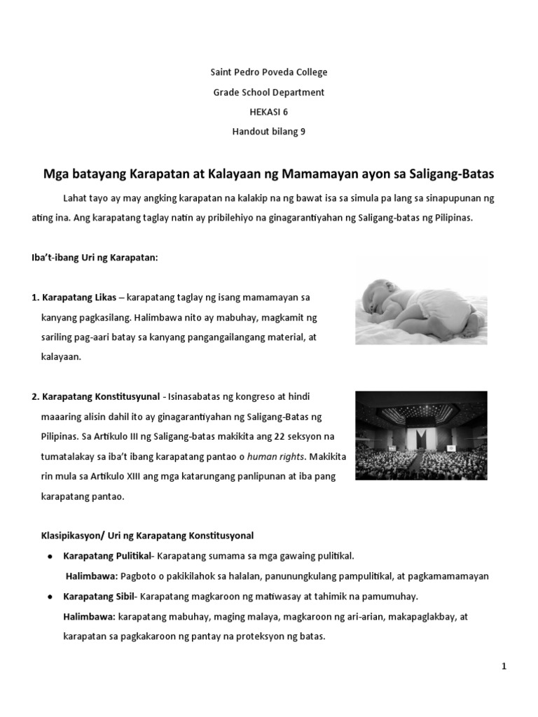 2 Dapat lapatan ng kaukulang batas ang pagpapahirap na pisikal sikolohikal o imbing pagpaparusa sa sino mang bilanggo o detenido o ang paggamit ng mga kaluwagang penal na di-makatao. Artikulo 2 21. KARAPATANG PANTAO Karapatan ay pribilehiyo na ginagarantiyahan ng Saligang-batas ng Pilipinas Karapatang Likas karapatang taglay ng isang mamamayan sa kanyang pagkasilang.
