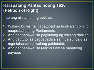 Presentation about Human Rights Scaffold Task Presented by. Page 1 of 58 results for karapatang pantao. Pagkakabuo ng Karapatang Pantao Magna Carta Cyrus Cylinder Petition of Right Bill of Rights The First Geneva Convention Declaration of the Rights of the Man and of the Citizen 3.