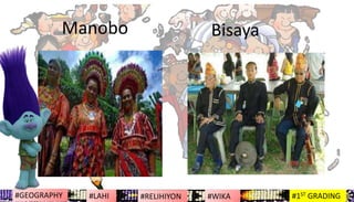 Ang kultura ay ang mga paniniwaladocx. Papel na ginagampanan ng heograpiyang kultural sa pag-aaral ng daigdig. MELC-BasedNapahahalagahan ang natatanging kultura ng mga rehiyon bansa at mamamayan sa daigdig lahi pangkat- etnolingguwistiko at relihiyon sadaigdig.