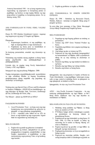View Full Document Report Students who viewed this also studied PANITIKAN- dekada 70 5docx 1. Mula ito sa Duguang Lupa ng KM64 Poetry Collective Dekada 70 ni. Pagkilala sa tao sa harap ng batas Karapatang maging malaya Karapatang pantay-pantay na dignidad Ito ay mga nilabag na karapatang pantao sapagkat alam naman nating lahat na ang Dekada 70 ay tumutukoy o ipinapakita ang isang di-makatao at di-makatarungang gobyerno na nagbibingihan sa daing ng mamamayan.