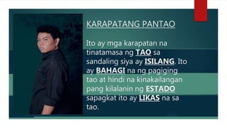 FfKARAPATANG PANTAO ay ang mga karapatan na tinatamasa ng tao sa sandaling siya ay isilang.