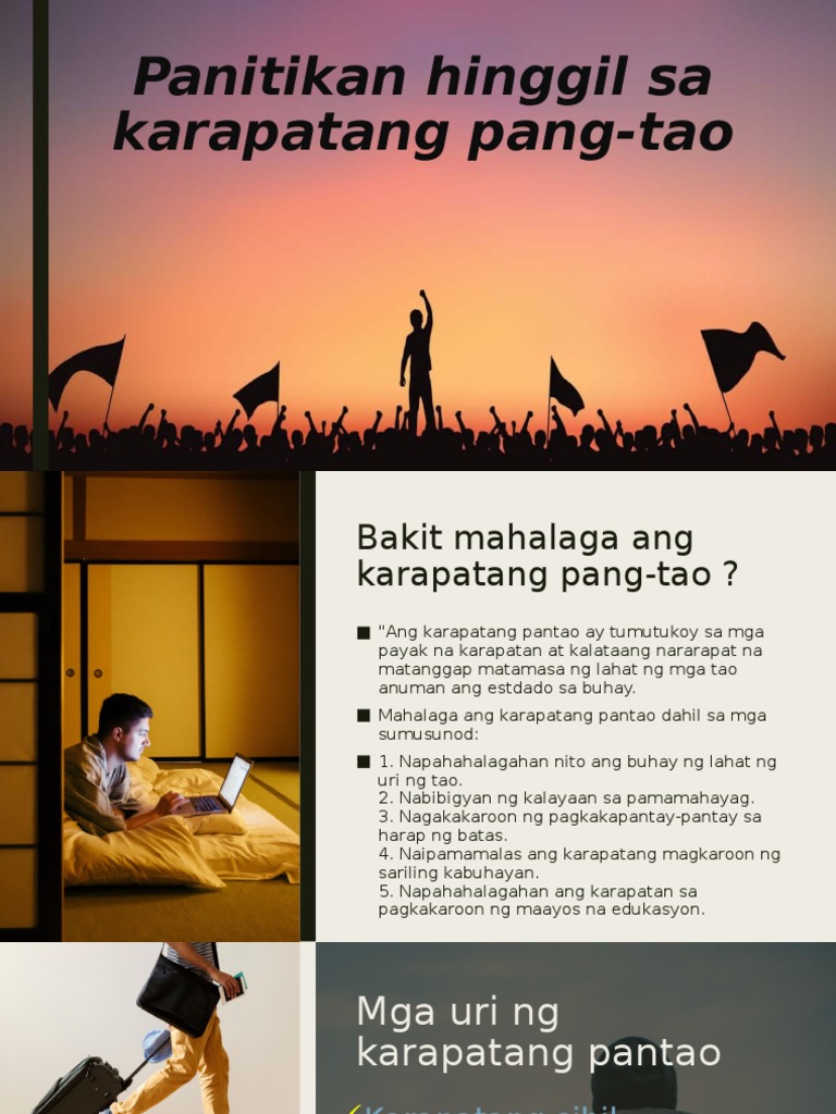 Ang mga Karapatang Pantao at angPagkamamamayanAno ng ba ang layon nito Naglalayong ipaliwanag ang kaugnayan ng ating mga karapatan sa ating pagiging mamamayan ng isang estado. Ilan lang sa mga. Ang Karapatang Pantao o Human Rights ay dapat malaman ng isang simpleng mamamayang Pilipino.