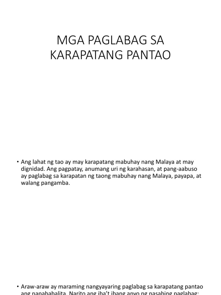 Kindly abide by the basic rules of chatting and observe proper. Sanaysay na tumatalakay sa epekto ng paglabag sa karapatang pantao. Answer to Ted Talk script na tumatalakay sa pagsulong ng karapatang-pantao.